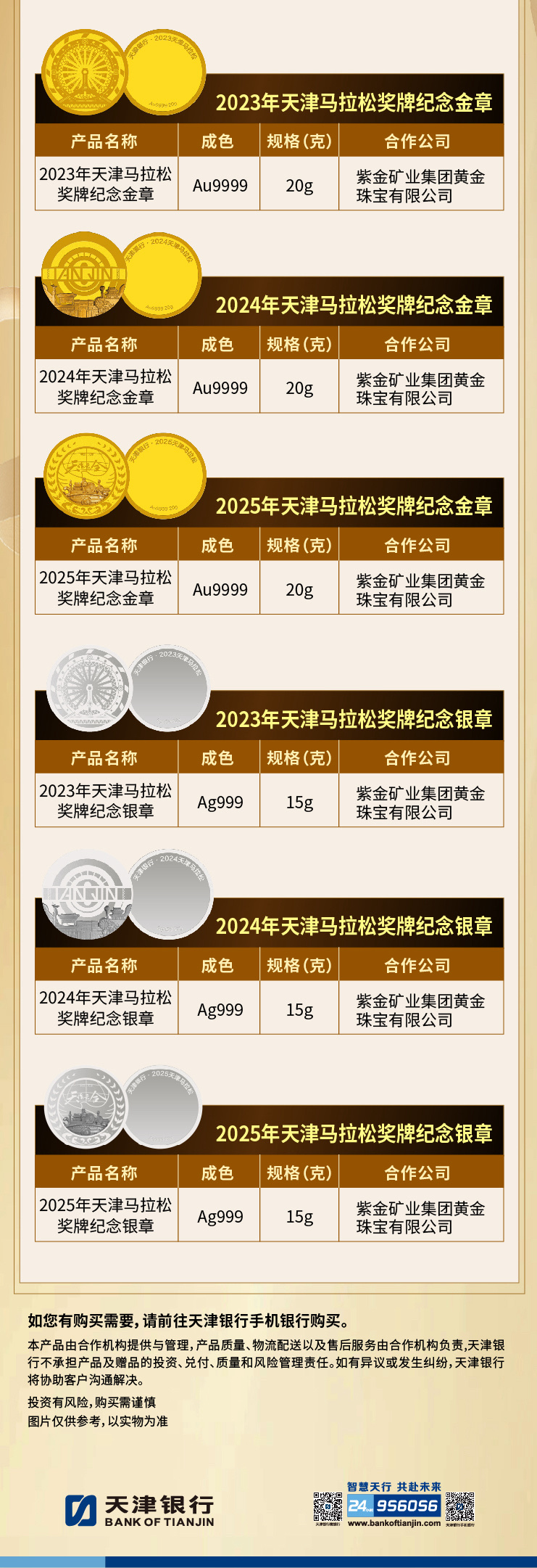 天津银行代理销售实物贵金属产品信息表(日期:2026年4月)