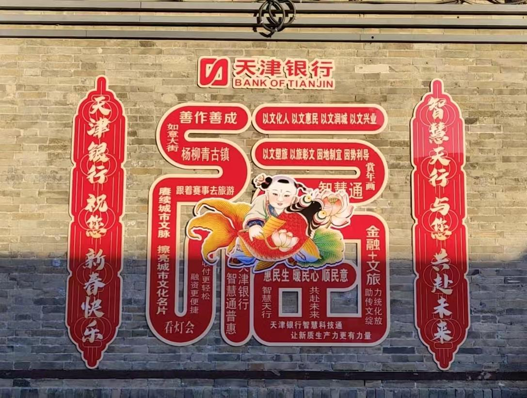作为扎根天津的本土金融机构,天津银行始终致力于服务地方经济发展,传承弘扬中华优秀传统文化,此次助力杨柳青古镇元宵灯会,是天津银行积极践行企业社会责任、支持文化产业发展的重要举措。在灯会现场,以杨柳青“北国江南”和“沽上扬州”的风格结合天津银行元素进行了展台布展设计,针对元宵节庆气氛定制了展位、易拉宝、宣传品等物料。