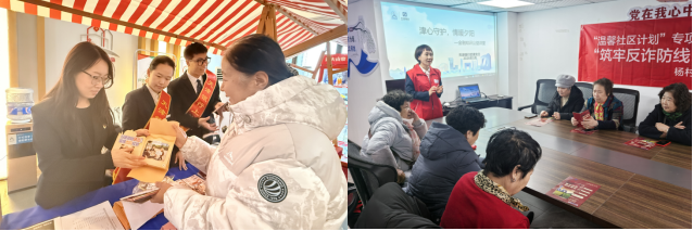 志愿者走进社区,用通俗易懂的语言讲解防范电信诈骗、识别非法集资、人民币防伪、手机银行安全使用等知识,通过典型案例分享与“一对一问诊式”咨询服务,提升群众金融风险防范意识,用心守护老百姓的“钱袋子”。