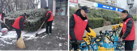 积极投身新时代文明实践,参与全国“两会”值守、环境清洁、积雪清扫、规范停放共享单车等志愿活动,以实际行动展现金融担当,以点滴小事守护城市文明。