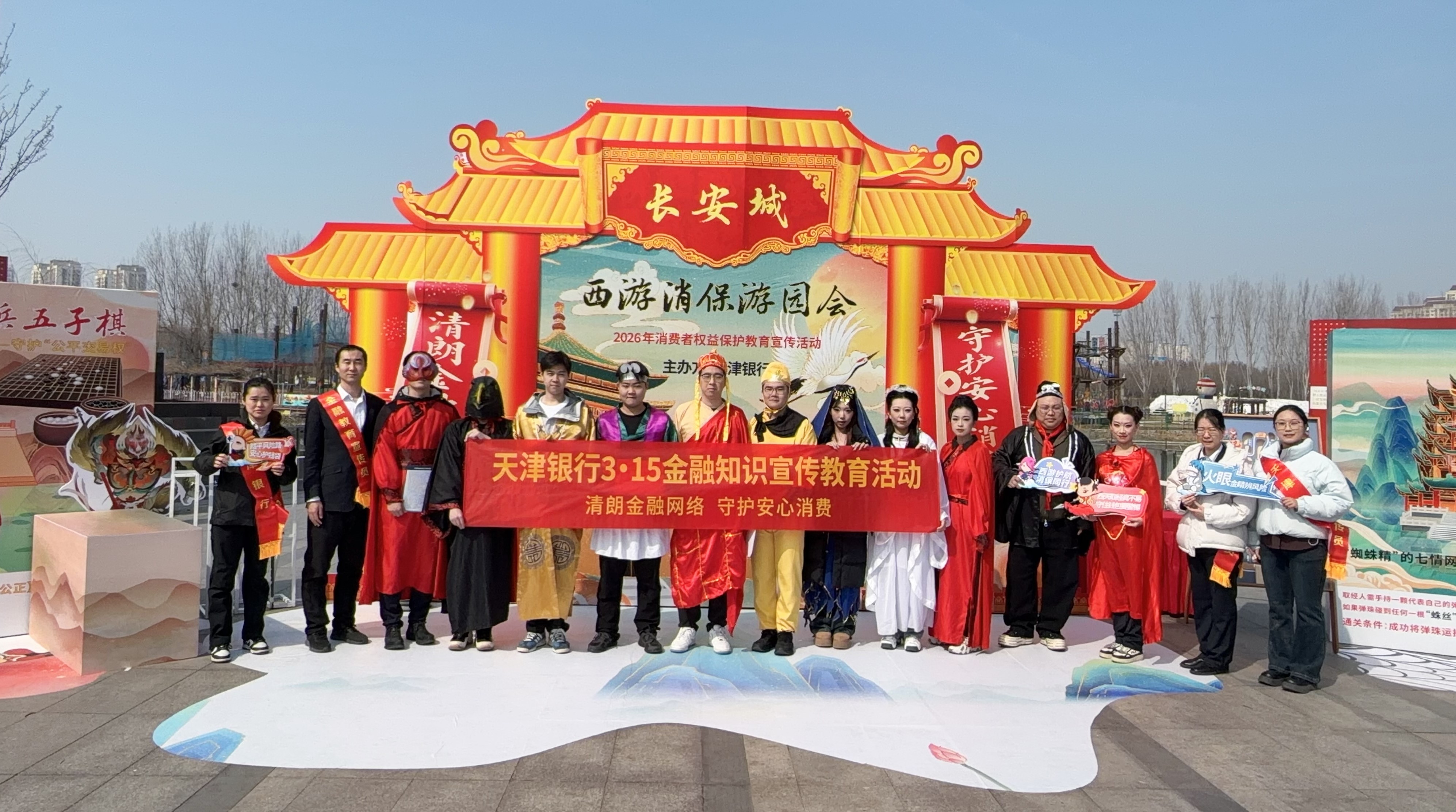 “3·15”金融消费者权益保护教育宣传活动期间,在天津金融监管局的指导下,天津银行在天津市河东区桥园公园举办“西游消保游园会”。活动创新融合西游记经典IP与金融教育,将抽象的消保知识转化为可互动、可体验的游戏场景,现场市民化身“取经人”,沿着精心打造的“西游取经路”闯关打卡,在沉浸式体验“降妖除魔”过程中解锁金融消保知识。